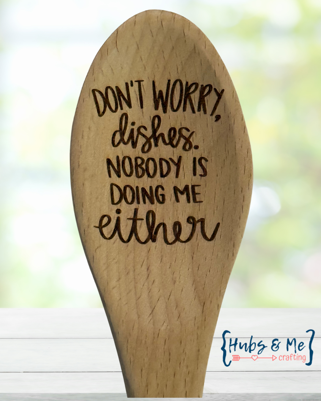 Spice up your kitchen with a little humor! This beautifully crafted wooden spoon is engraved with the hilarious phrase, "Don't worry dishes, nobody is doing me either." This spoon is sure to bring a smile to your face and some laughter to your those who read it!